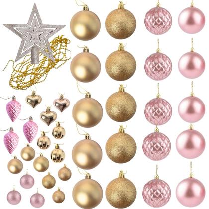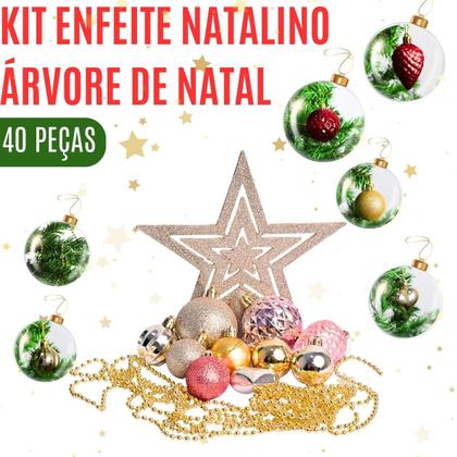 Kit Enfeite Natalino 40 Peças Árvore Bolas Cordão Coração Pinha Estrela Ponteira Decoração Resistente Versátil Prático Design Moderno Guirlanda