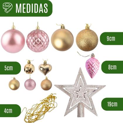 | Com um design clássico e sofisticado, o kit conta com uma grande variedade de enfeites | bolas com glitter, corações, pinhas, estrela de topo, cordão de pérolas e muito mais — tudo cuidadosamente combinado para criar uma árvore deslumbrante e cheia de personalidade. |