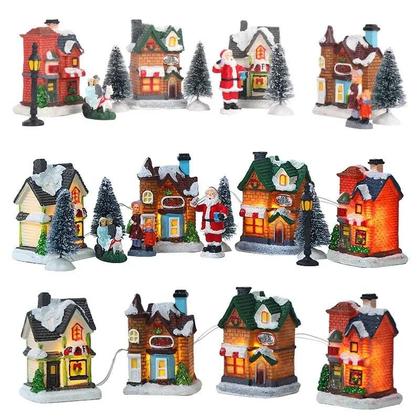 Conjunto De Enfeites De Natal Em Resina LED Com Vila, Papai Noel, Agulhas De Pinheiro, Paisagem - others